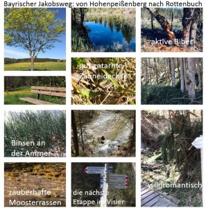 Es ist April 2019 und ich bin sieben Teilstücke gelaufen. Keine einzige Etappe in 2018. Es steht an: Hohenpeißenberg bis Rottenbuch. 14,5 km durch die Ammerschlucht. „Den Weg durch die wildromantische Ammerschlucht sollte man nicht unterschätzen. Das stetige Auf und Ab entlang der reißenden Ammer fordert die Kondition. … Wenn Sie nicht ganz schwindelfrei sind, sollten Sie die Alternativroute nehmen…. Keine Einkehrmöglichkeit …“ schreibt Christiane Haupt in ihrem Pilger-Handbuch. Dazu habe ich noch deutlich die Worte von Anja aus Berlin in den Ohren. Wie furchtbar diese Strecke war. Wieviel Angst sie vor den schmalen, abschüssigen Wegen und den abenteuerlichen, rutschigen Stegen übers Wasser sie hatte. „Ich habe vor Angst geweint“ – dieser Satz hat sich mir eingeprägt.