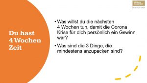 Volle 4 Wochen, die wir nutzen können, mit Vollgas das zu tun, was wir eigentlich immer schon tun wollten.