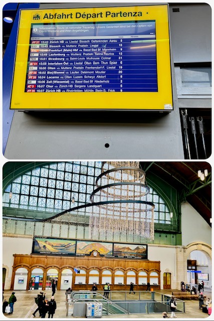 Gleich bei der Ankunft ein positiver Schock: Die Bahnanzeige am Baseler Bahnhof. Ihr seht, dass ihr nichts seht. Kein Zugausfall, keine Verspätung. Null. Nix davon. Und: Bahnhöfe können auch schön aussehen. Also, man braucht Ziele 😄